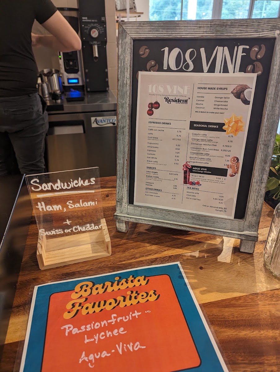 Welcome to 108 Vine, a cozy gem located at 3735 W University Ave, Gainesville, FL. This inviting café not only serves exceptional coffee but also creates a warm atmosphere that lifts your spirits. Based on rave reviews, the standout items include their Blue Winter Latte and the indulgent banana bread latte with cold foam. The skilled baristas, particularly James and Jory, deliver drinks with remarkable speed without compromising quality.